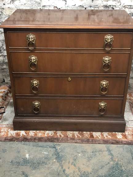 Wooden 4 drawer file cabinet wiht ornate pulls